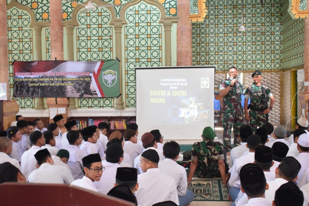 “Sosialisasi ini dilaksanakan agar para santri calon pendaftar mengerti dan memahami persyaratan apa yang harus dipenuhi, dan materi apa saja yang akan diujikan serta tahapan seleksi penerimaan prajurit TNI AD,” kata Kolonel Arh Dodo Masdori, S.I.P., M.Si.